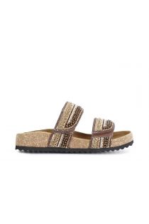 flache sandalen, pantoffel-modell, aus kork und strass mit farbverlauf multi brown