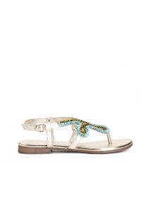 Flip-flop-sandalen mit stickereien und applikationen. futter und innensohle sind aus leder. der absatz ist 2 cm hoch. angenehm zu tragen und einfach zu kombinieren.