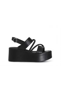 Franziskanersandalen mit mikrostrass-riemen auf lederbezogener keilsohle.