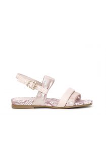 Sandalen im Franziskanerstil aus zwei Materialien, Leder und Laminat, mit Riemen. Bequemes Fußbett mit Animalier-Druck.