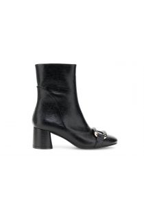 Stiefeletten aus Kunstleder für Damen mit goldfarbenem Verschluss. Bequeme Passform und 6 cm hoher Blockabsatz. Eleganz und Komfort für jeden Anlass.