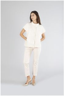 Frühlingsdaunenjacke mit flügelärmeln aus unfühlbarem nylon mit glänzendem finish. horizontales quilten. knopfverschluss.