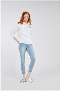 EverGreen: Nach dem großen Erfolg in der Winterkollektion ist diese Skinny Denim Hose zu einem Ganzjahresmodell der Marke CafèNoir geworden. Aus stückgefärbtem Superstretch-Gewebe, an den Taschen und Oberschenkeln leicht nuanciert.