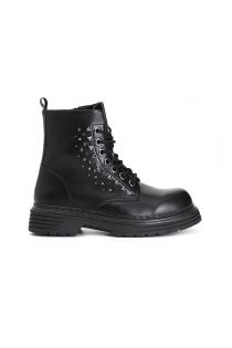 Damen-schnürstiefelette aus lederimitat mit trendigen nieten verziert.