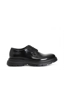 Derby-schnürschuh für herren aus gebürstetem leder. die innensohle ist aus leder gefertigt.