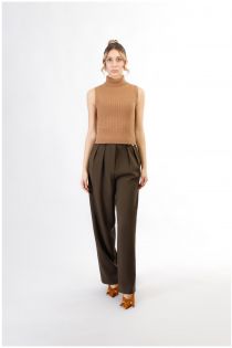 Ärmelloser unterjackenpullover mit hohem kragen mit rippen- und zopfmuster aus viskose-mischgarn. perfekt zu jeder kombination kombinierbar.