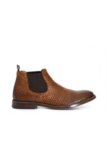 Geflochtene leder-hochfrontpumps mit gummizügen.