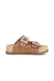 geflochtener lederpantoffel mit doppelter schmuckschnalle, hoher boden earth
