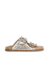 geflochtener lederslipper mit doppelter schnalle light gold