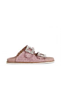 geflochtener lederslipper mit doppelter schnalle pink
