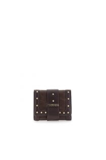 geldbörse in lederoptik mit einfassung und nieten dark brown