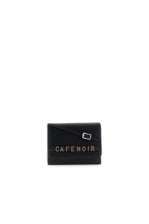 geldbörse in lederoptik mit klappe, schriftzug und schnalle black