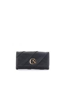 Geldbörse in Lederoptik mit Klappe und Café-Logo aus Metall.