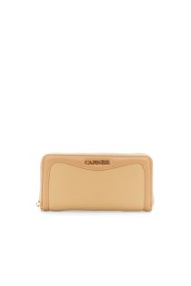 geldbörse in lederoptik mit reißverschluss und schriftzug biscuit