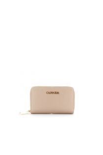 geldbörse mit doppelreißverschluss und saffiano-effekt und schriftzug taupe