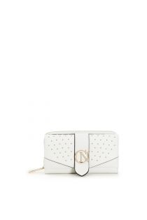 Geldbörse mit reißverschluss und klappe die mit mikro-nieten und einem riegel an dem ein cafènoir charm hängt verziert ist.