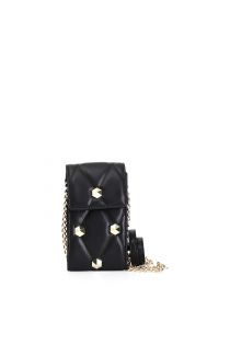 Gesteppte handytasche mit sechseckigen nieten. umhängetasche mit goldfarbener kette.
