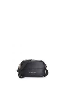 Gepolsterte kameratasche aus nylon gummilogo und abnehmbarer anhänger. tasche mit einem einzelfach und einer innentasche mit reißverschluss. reißverschluss. verstellbarer schultergurt.
