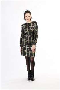 gerade geschnittenes, bedrucktes kleid pistachio check