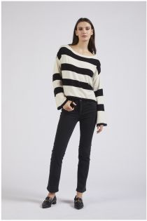 Gestreifter pullover mit rundhalsausschnitt und langen ärmeln. bequeme passform aus viskosegarn.