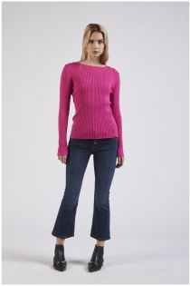 Pullover mit rundhalsausschnitt und langen ärmeln im rippenstrick aus einem viskosegarn. personalisierte schulterplaketten.