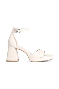Ledersandalen mit blockabsatz und verstellbarem knöchelriemchen. innensohle leder. 20 mm hoher plateauschuh und 80 mm absatz.