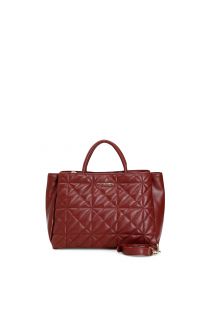 Bauletto-Tasche, die in der Hand, dank optionalem Schulterriemen aber auch über der Schulter getragen werden kann, verziert mit einer geometrischen Steppung und CafèNoir-Metallplakette