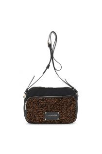 gesteppte kameratasche aus nylon mit flockdruck caramel/black