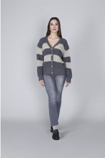gestreifte strickjacke mit lurex multigrey