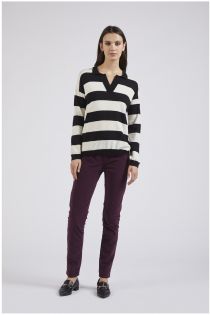Gestreifter pullovers mit knopfleiste und langen ärmeln. gestrickt aus viskosegarn.