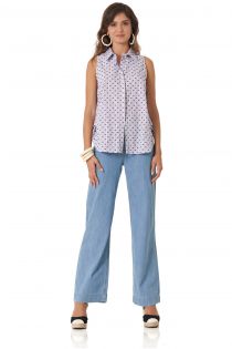 GESTREIFTES ÄRMELLOSES HEMD MIT HINTEREM VOLANT