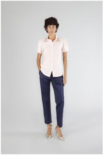 Hemd in normaler passform mit kurzen rüschenärmeln und schmuckapplikation am kragen. aus gestreifter elastischer baumwollpopeline. passt perfekt zu hosen oder jeans.