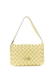 gewebte schultertasche in nappa-optik mit metallbuchstaben yellow