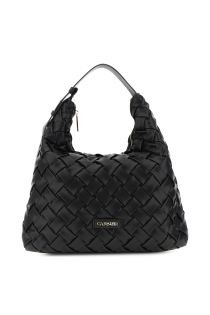 gewebte tasche in nappa-optik mit metallbuchstaben black