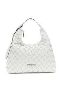 gewebte tasche in nappa-optik mit metallbuchstaben white