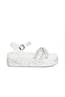 gilda-sandalen mit drei raffiabast-bändern und strass white