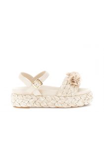 gilda-sandalen mit keilabsatz, bastband und blumen beige