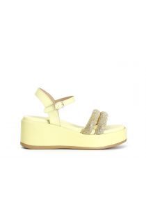 gilda sandaletten mit keil und doppeltem riemen mit strass yellow
