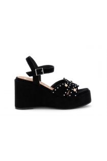 gilda wildleder-keilsandalen mit nieten und cabochons black