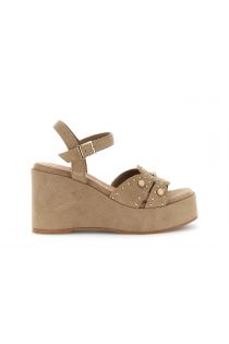gilda wildleder-keilsandalen mit nieten und cabochons sand