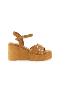 gilda wildleder-keilsandalen mit nieten und cabochons tan