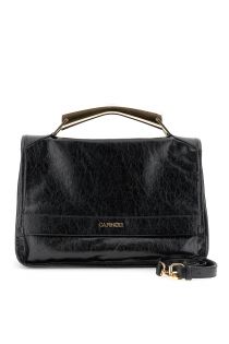 Handtasche in Naplak-Lederoptik mit Überschlag, festem Metallgriff, goldener Schrift und abnehmbarem Schulterriemen für vielseitige Einsatzmöglichkeiten.
