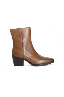 Glatte damenstiefelette aus leder. reißverschluss innen. 55 mm hoher absatz. die innensohle ist aus leder. ein schuh im texanischen stil mit kühnem charakter der ihrem look das gewisse etwas verleiht.