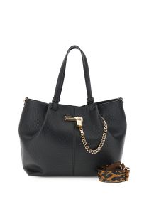 Einkaufstasche in Lederoptik mit Logokette und Vorhängeschloss. Abnehmbarer Schulterriemen aus Animal-Print für einen markanten, ultra-femininen Look.