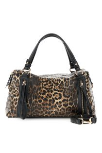 Henkeltasche in Lederoptik mit Leopardenmuster, Reißverschlussanhänger und Metallbuchstaben. Ein abnehmbarer Schulterriemen und schwarze Details verleihen ihr einen markanten und zugleich eleganten Look.