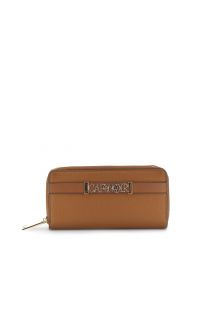 große geldbörse mit doppeltem reißverschluss und genarbter lederoptik tan