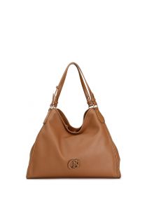 Großer shopper aus genarbtem material. appliziertes logo in lederoptik mit handnaht und einfassung an den seiten. super geräumig mit doppelter tragbarkeit (interner kordelzug). magnetverschluss.