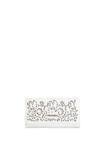 großes portemonnaie mit überschlag, laserperforation und nietenapplikation, buchstaben white