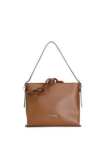 halbstarre tasche mit metallschnallen und weicher kette tan