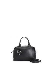 Handtasche aus glattem wattiertem synthetikmaterial mit puffeffekt und pailletten-blumenapplikation. tasche mit einem einzelfach und einer innentasche mit reißverschluss. reißverschluss. tasche mit schultergurt.